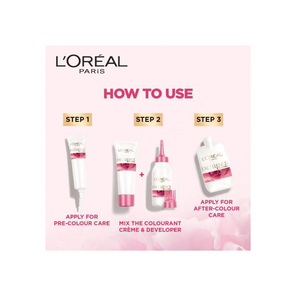 Loreal Paris gives women world over a reason to color their hair with this Excellence Cream. Made using Pro-Keratin, the Loreal Paris Excellence Cream Hair Color coats each strand with glossiness and shine and ensures that coloring your hair is a pleasurable experience. The special Pro-Keratin strengthens and revitalises your hair so that when you color it, you are assured of hair color that shines with all its brilliance. This Excellence Cream in the shade Burgundy – 3.16 is a rich shade that looks subtle yet radiant whether under artificial light or natural.