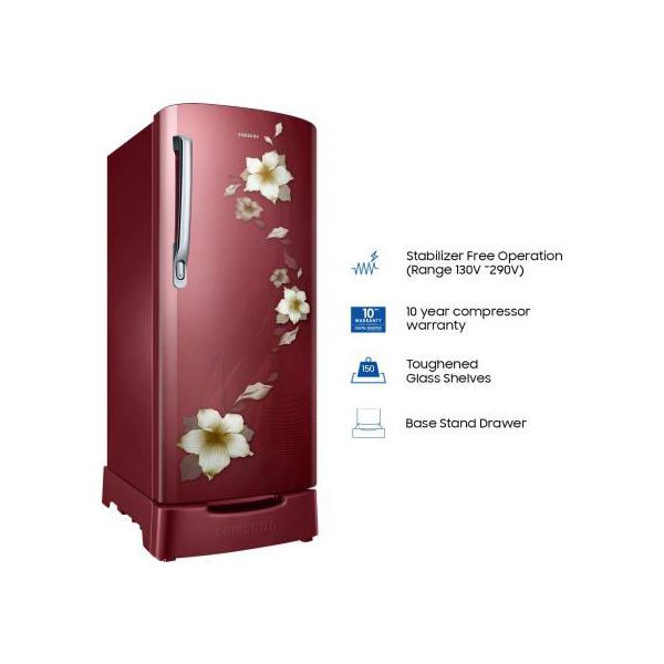 Samsung 192 L Direct Cool Single Door 2 Star 2019 BEE Rating Refrigerator with Base Drawer (Star Flower Red, RR19N1822R2-HL/ RR19R2822R2-NL)